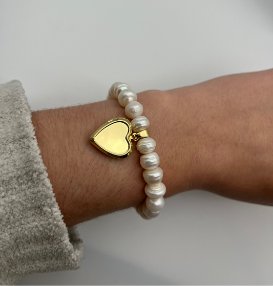 Sold outHeart Locket Pearl Bracelet